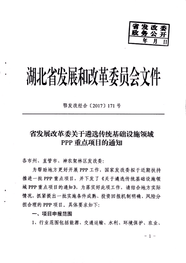 省發(fā)改委關(guān)于遴選傳統(tǒng)基礎(chǔ)設(shè)施領(lǐng)域PPP重點項目的通知